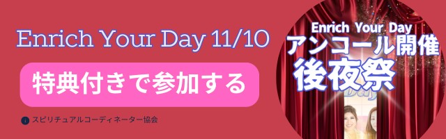 スピリチュアルコーディネーター協会がお届けする、スピリチュアルワークがいっぱいの参加型イベント、Enrich Your Dayが、11月1日に無事終了いたしました。